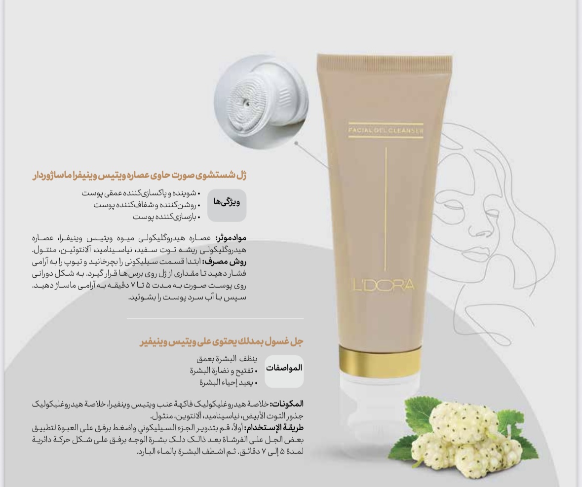 ژل شستشوی صورت حاوی عصاره ویتیس وینیفرا ماساژوردار لدورا کر ۱۰۰ میلی لیتر