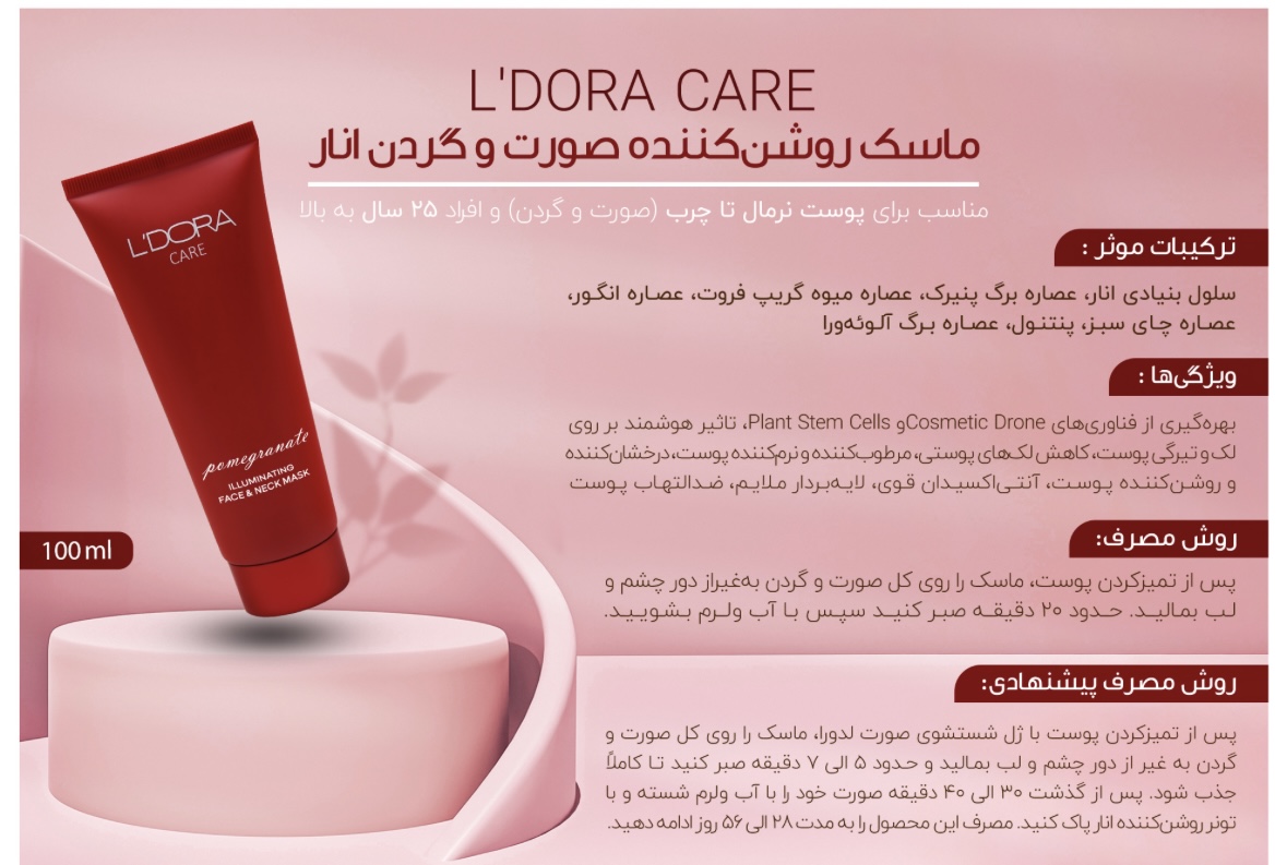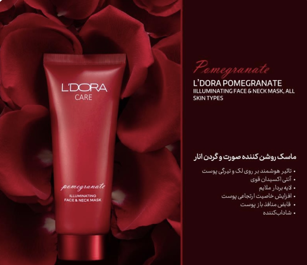 ماسک روشن کننده صورت و گردن انار لدورا کر، 100 میلی لیتر
