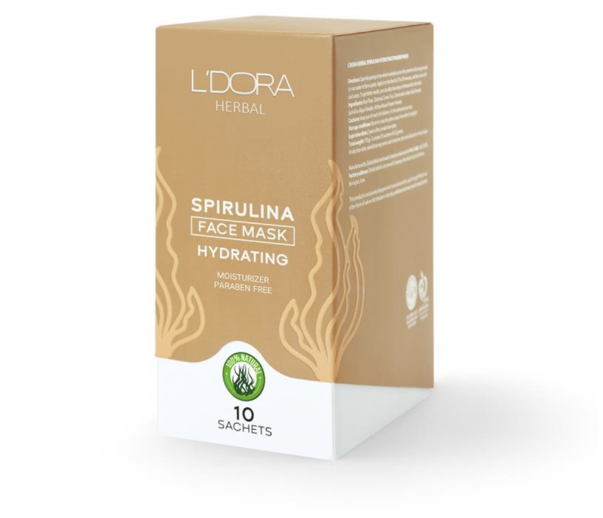 شناسنامه ی ماسک پودری اسپیرولینا آب رسان لدورا هربال بسته 10 عددی